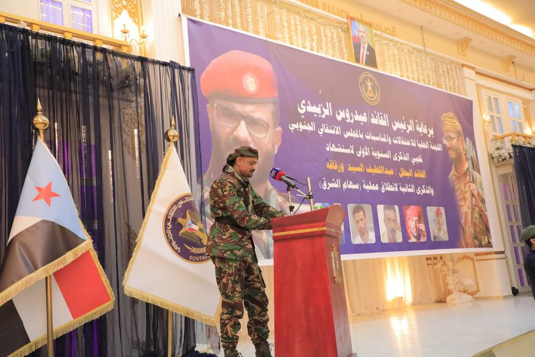 أحيا المجلس الانتقالي الجنوبي، في العاصمة عدن اليوم الخميس، الذكرى السنوية الأولى لاستشهاد القائد البطل عبداللطيف السيد ورفاقه، والذكرى الثانية لإطلاق عملية سهام الشرق، برعاية الرئيس القائد عيدروس الزبيدي رئيس المجلس الانتقالي الجنوبي.