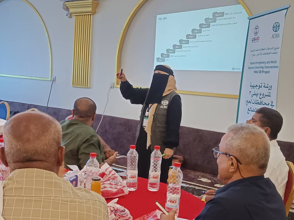أقامت منظمة ادرا صباح اليوم الخميس بمحافظة لحج ورشة تعريفية توجيهية لمشروع يملي 3 وهو مشروع للتدخلات الطارئة المنقذة للحياة متعددة القطاعات في اليمن .
