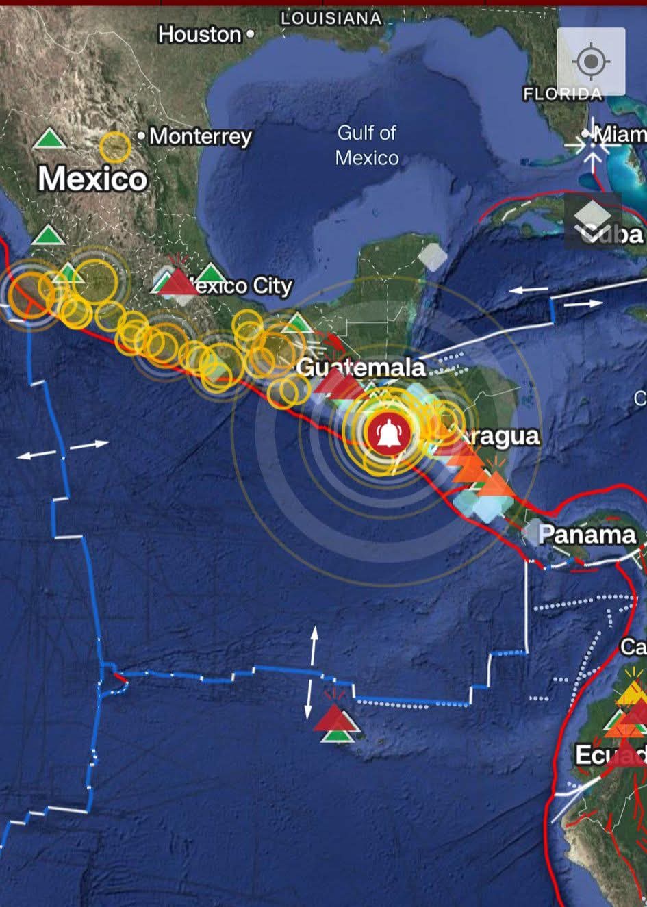 في محيط قناة بنما التي تربط قارة أمريكا الشمالية والجنوبية ووقوع أكثر من 500 هزة وزلازل خلال ال48 ساعة الماضية من ساحل المكسيك وحتى ساحل الاكوادور.