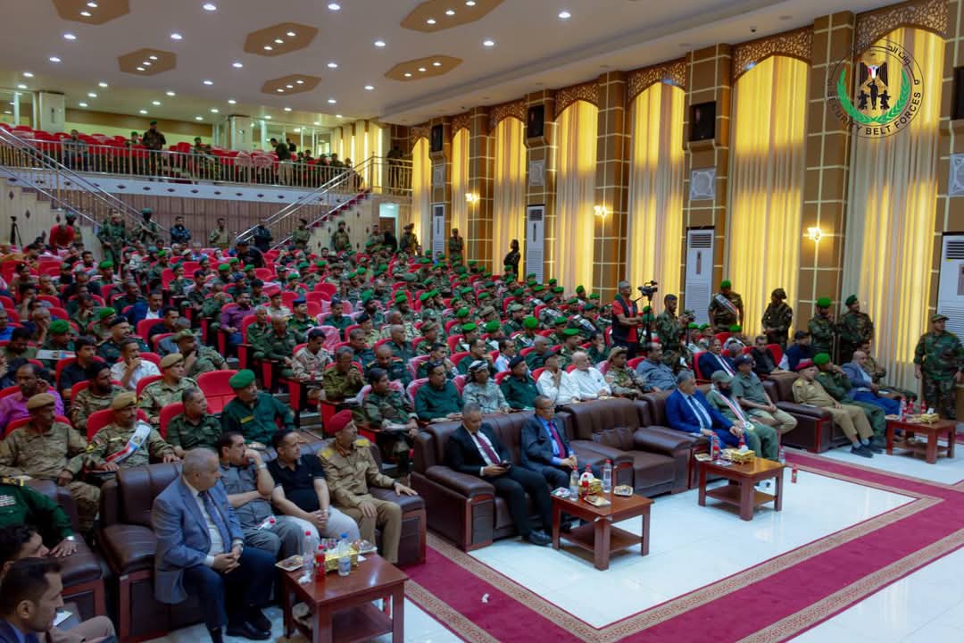 من جانبه، أشاد العميد محسن الوالي في كلمته بالحفل بالإنجازات والنجاحات المتواصلة التي حققتها قوات الحزام الأمني بالعاصمة عدن، والتي يشهد لها القاصي والداني، مُعتبراً إياها النموذج الأول للأحزمة الأمنية لمحافظات الجنوب، والذين تحطمت أمامهم كل خطط القوى الإرهابية والخارجين عن القانون.