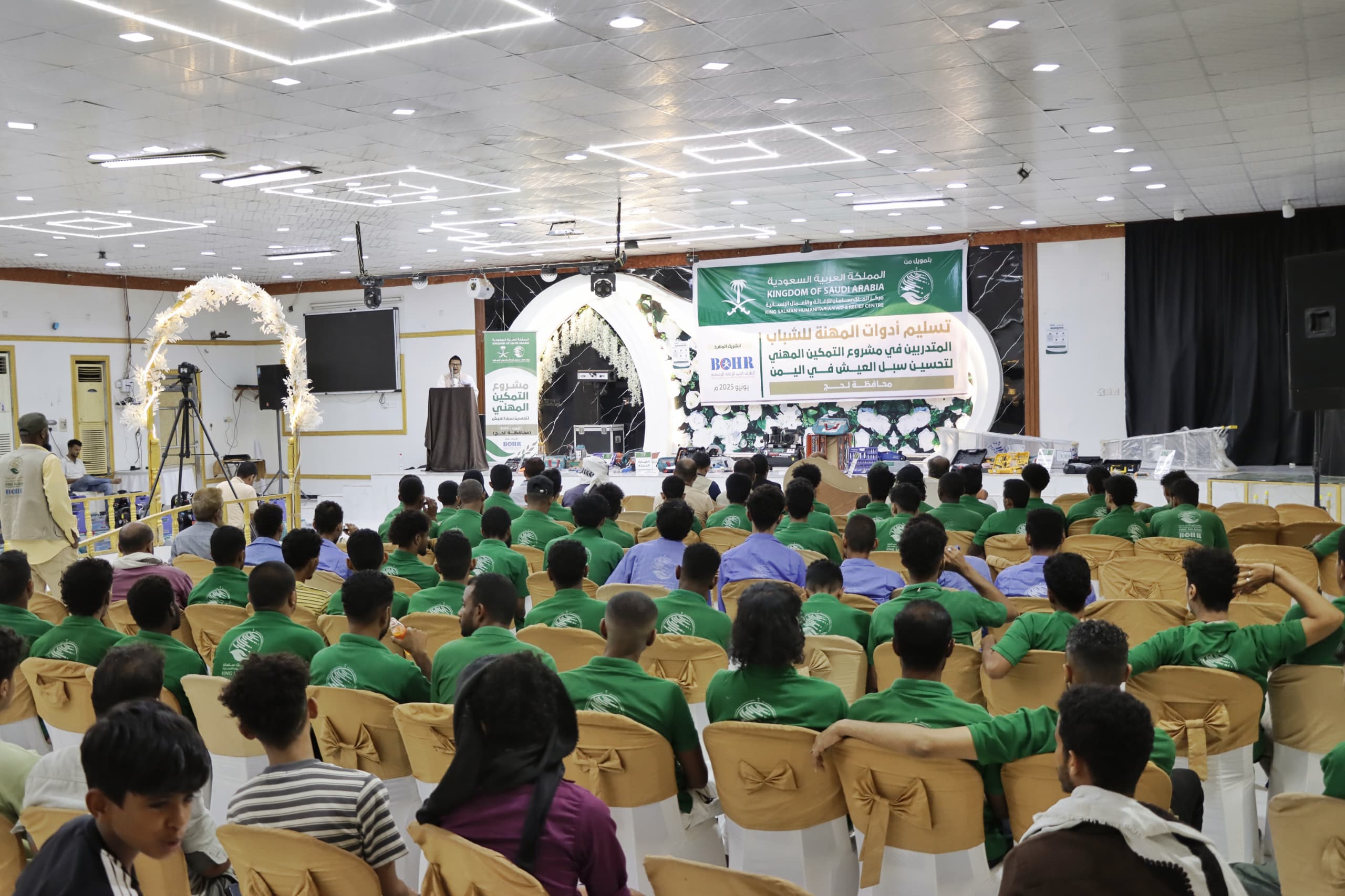 سلّم مركز الملك سلمان للإغاثة والأعمال الإنسانية، اليوم، في محافظة لحج، حقائب أدوات المهنة لـ 70 من الشباب المستفيدين من مشروع التمكين المهني لتحسين سبل العيش، الذي ينفذه ائتلاف الخير للإغاثة الإنسانية، ويستهدف بناء قدرات وتمكين 1500 شاب وشابة في سبع محافظات يمنية.