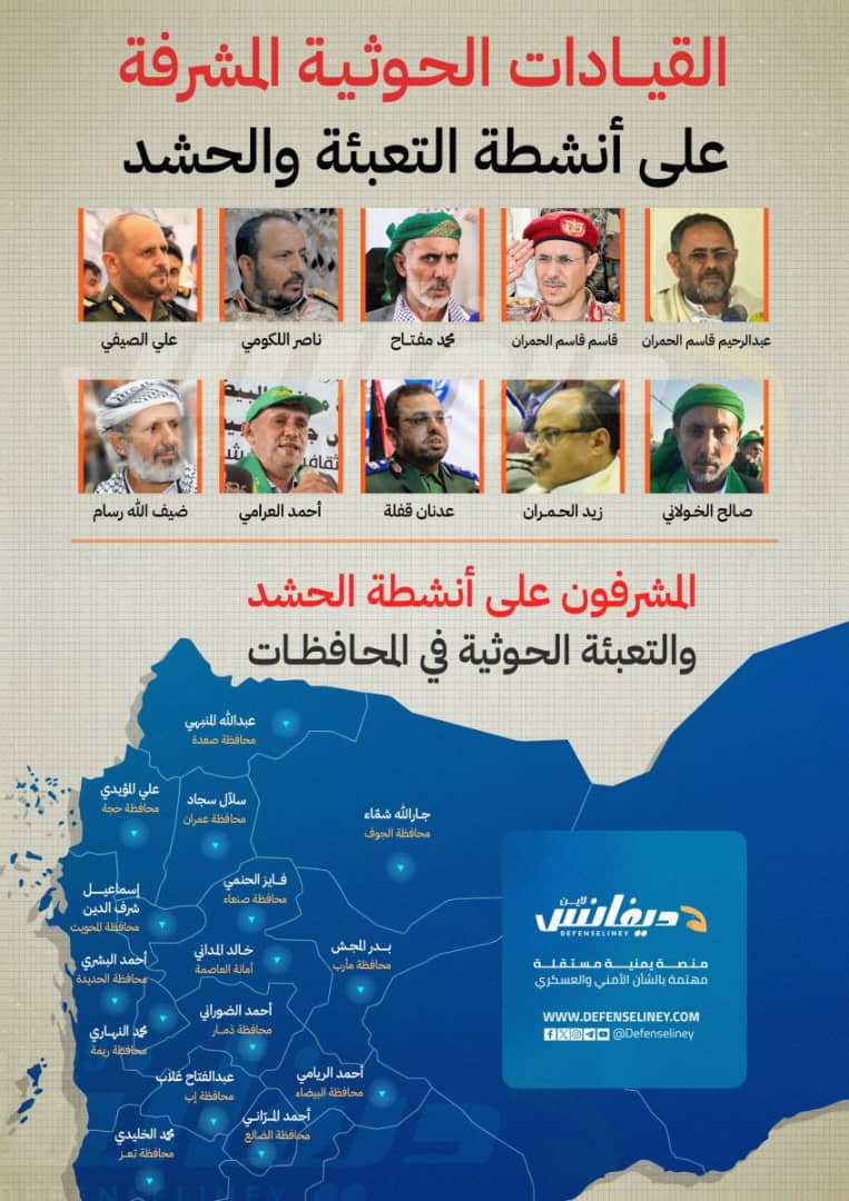 ويشارك القيادي حسين حسن محمد الحمران، في الإشراف على مراكز الحشد والدورات الأيدلوجية، كما تولى أيمن إسماعيل محمد أحمد الحيمي، مسئولية القيادة والسيطرة للحشد. وهو كان أحد أعضاء ما عرف بـ”خلية صنعاء الإرهابية” الحوثية التي جرى محاكمتهم خلال عامي 2006 و2007 بتهمة تشكيل عصابة مسلحة واستهداف الشخصيات والآليات العسكرية وسلسلة من التفجيرات.