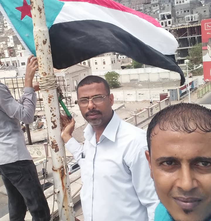 حيث نزلت لجنة من قبل المجلس الانتقالي بمديرية كريتر لتبدء برفع الإعلام بتعاون من قبل الموظفين والمواطنين.