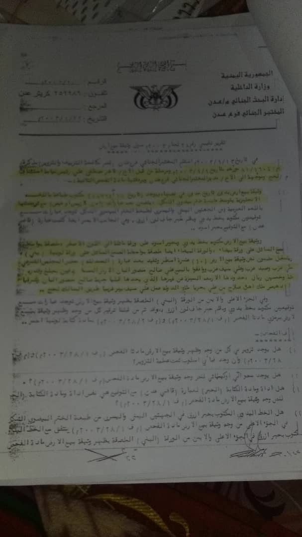 وتكشف القضية جانبا من ملفات فساد لوبي أراضي لحج، التي تعمل الأجهزة الأمنية بإشراف قيادة المحافظة على فتح خيوطها المتشابكة واصدر أوامر بضبط المتورطين وتقديمهم للقضاء.