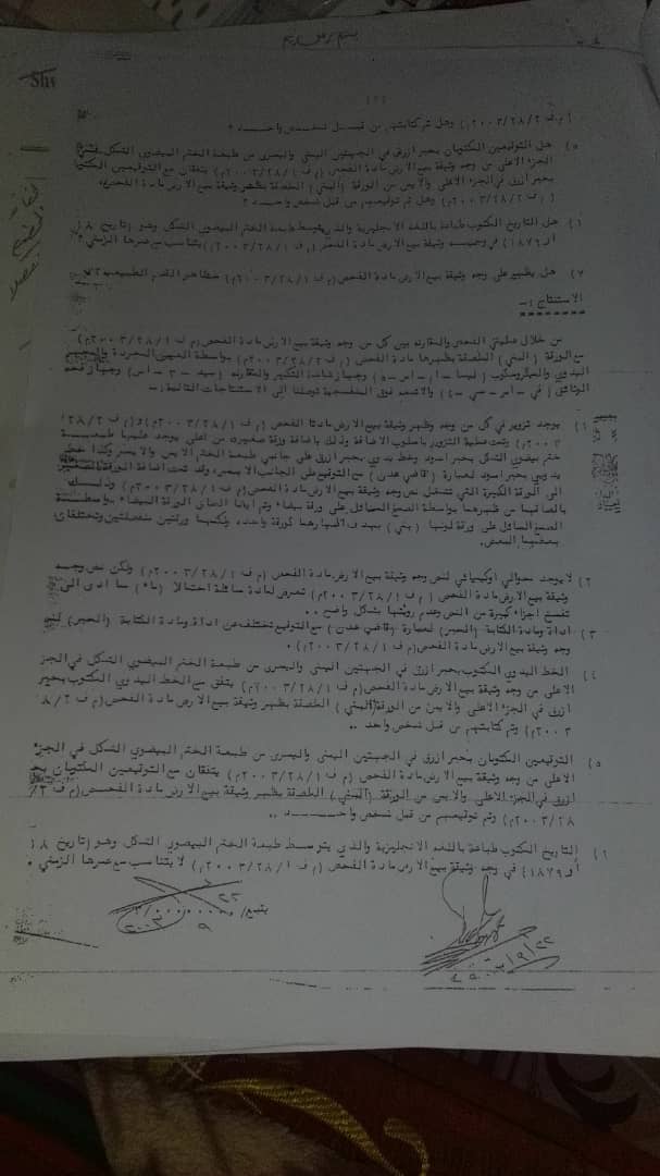 وتشير الوثائق إلى ان الارض المدعي بها لا تطابق ما يدعي به المذكور، وسبق أن قدمت نيابة استئناف الأموال العامة طعن في قرار ابتدائي ببرأة المذكور رغم اعترافه بالاستيلاء على أرض الدولة في فقرته الأولى وتنص فقرته الثانية على إلزام هيئة الأراضي بتاجير الأراض كونه ارض دولة، ما يكشف تناقض الحكم.