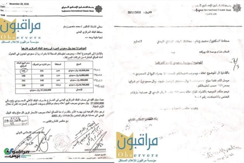– تقييد بعض العمليات بالريال اليمني في نظام البنك المركزي بعد يوم من توقيع وثيقة الموافقة على شراء المبالغ.