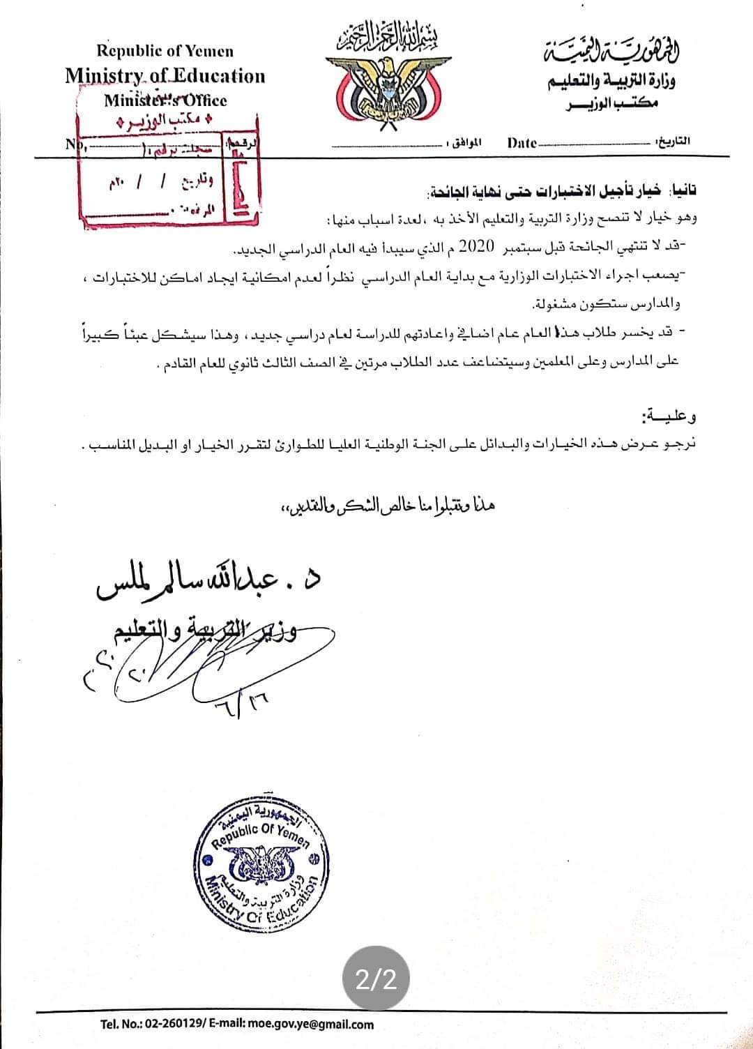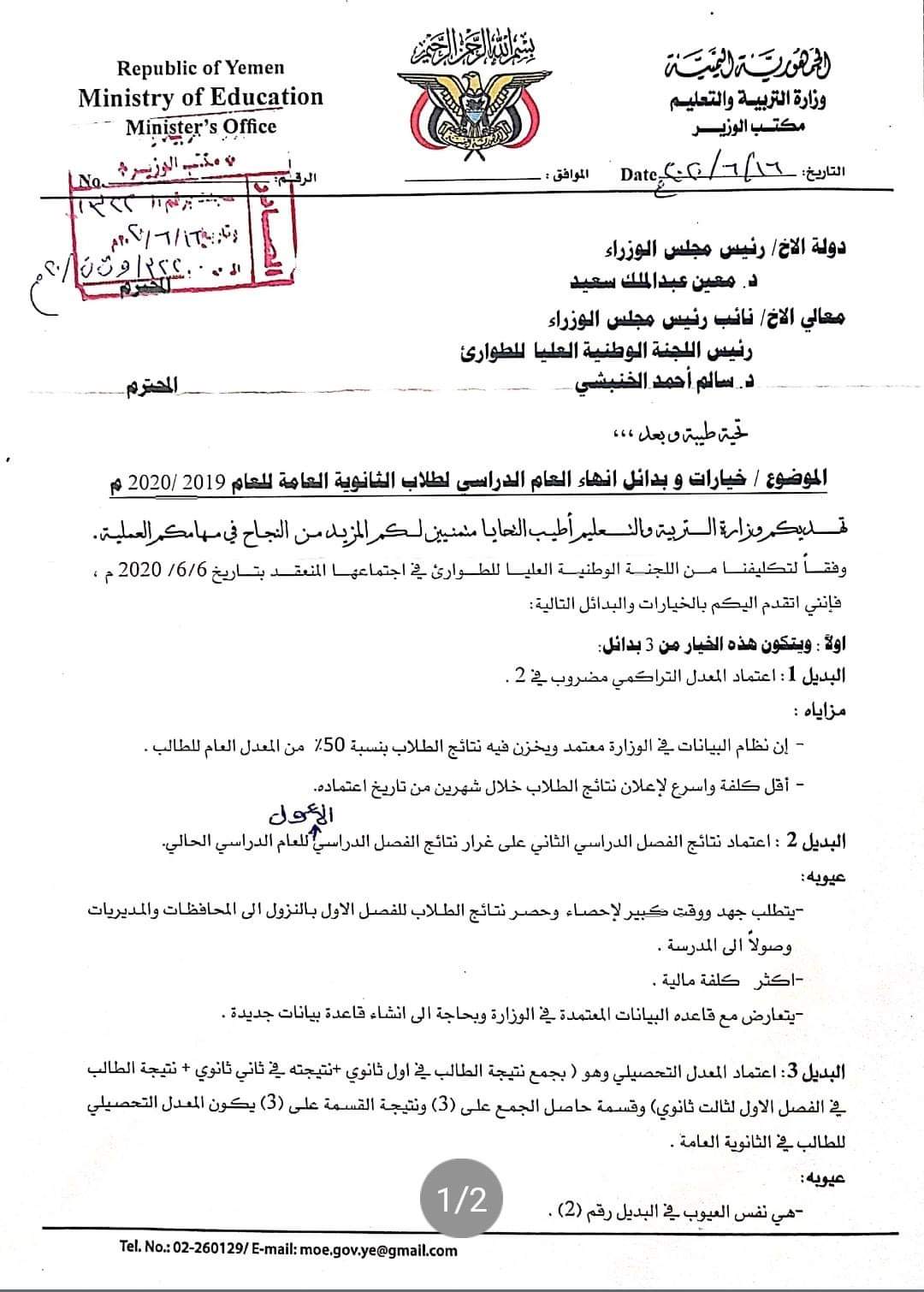 مرفق .. صورة للخيارات والبدائل المقدمة للجنة الوطنية للطوارئ.
